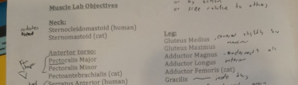 Part of what I’m learning to is the language. In fact one of the first lectures and labs was simply on the language to use describe where things are. To someone not familiar with the language, it may sound like gibberish to say that the tibia is lateral to the fibula and the lateral malleolus is at the distal end, but such a description can help someone who knows the language orient themselves as to its location. Similarly if someone says they have a sore sternocleidomastoid muscle, I’d know where it is, based simply on the name. (I’d also honestly wonder why they simply didn’t say they had a sore muscle in their neck). In that case, the name of the muscle basically describes its origin (the sternum and clavicle or cleido) and insertion (the mastoid process). (If you’re curious, if you turn your head to the left, you can see the right sternocleidomastoid sort of bulging from the right side of your neck).